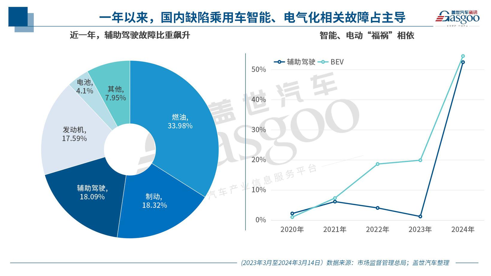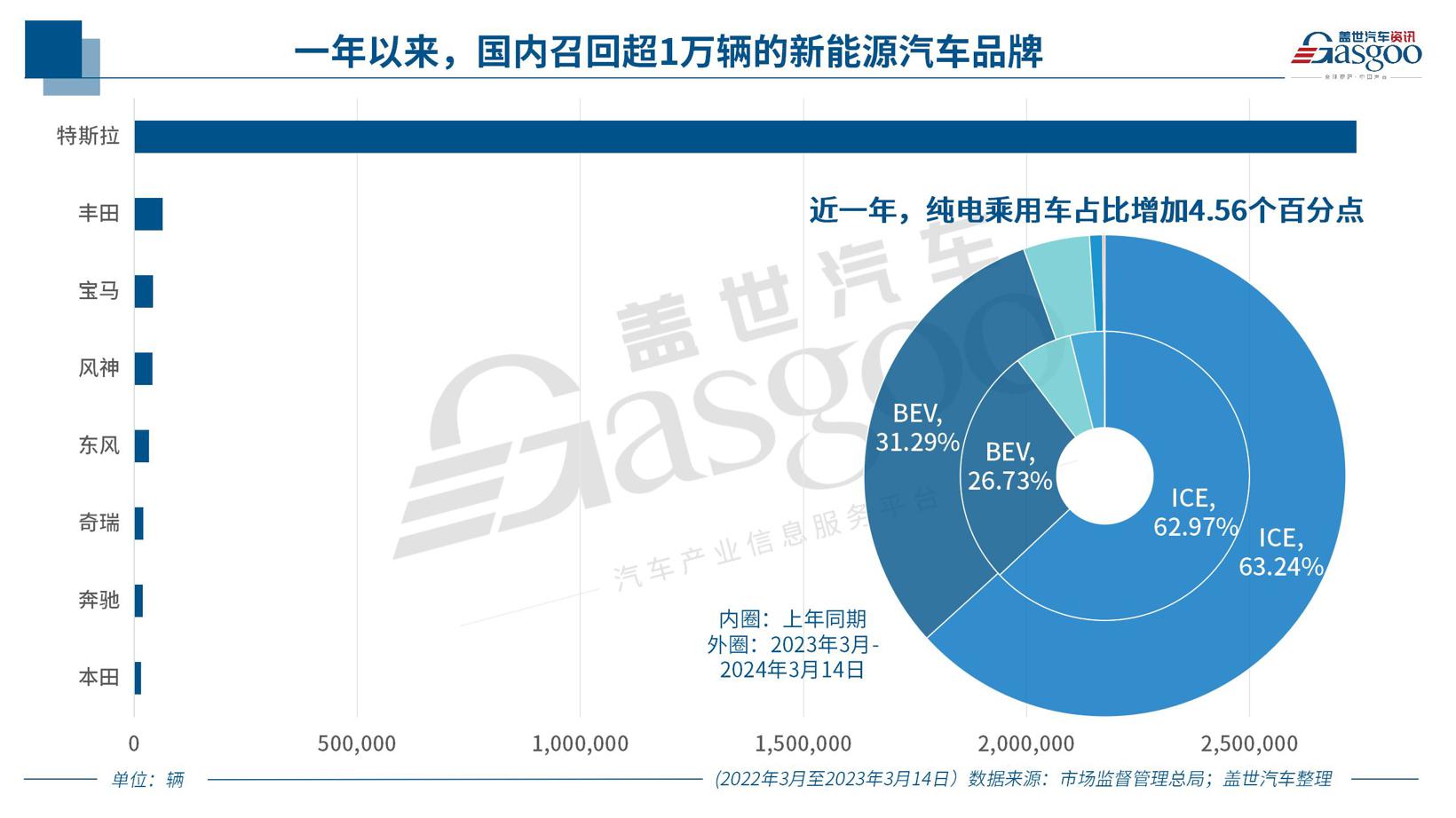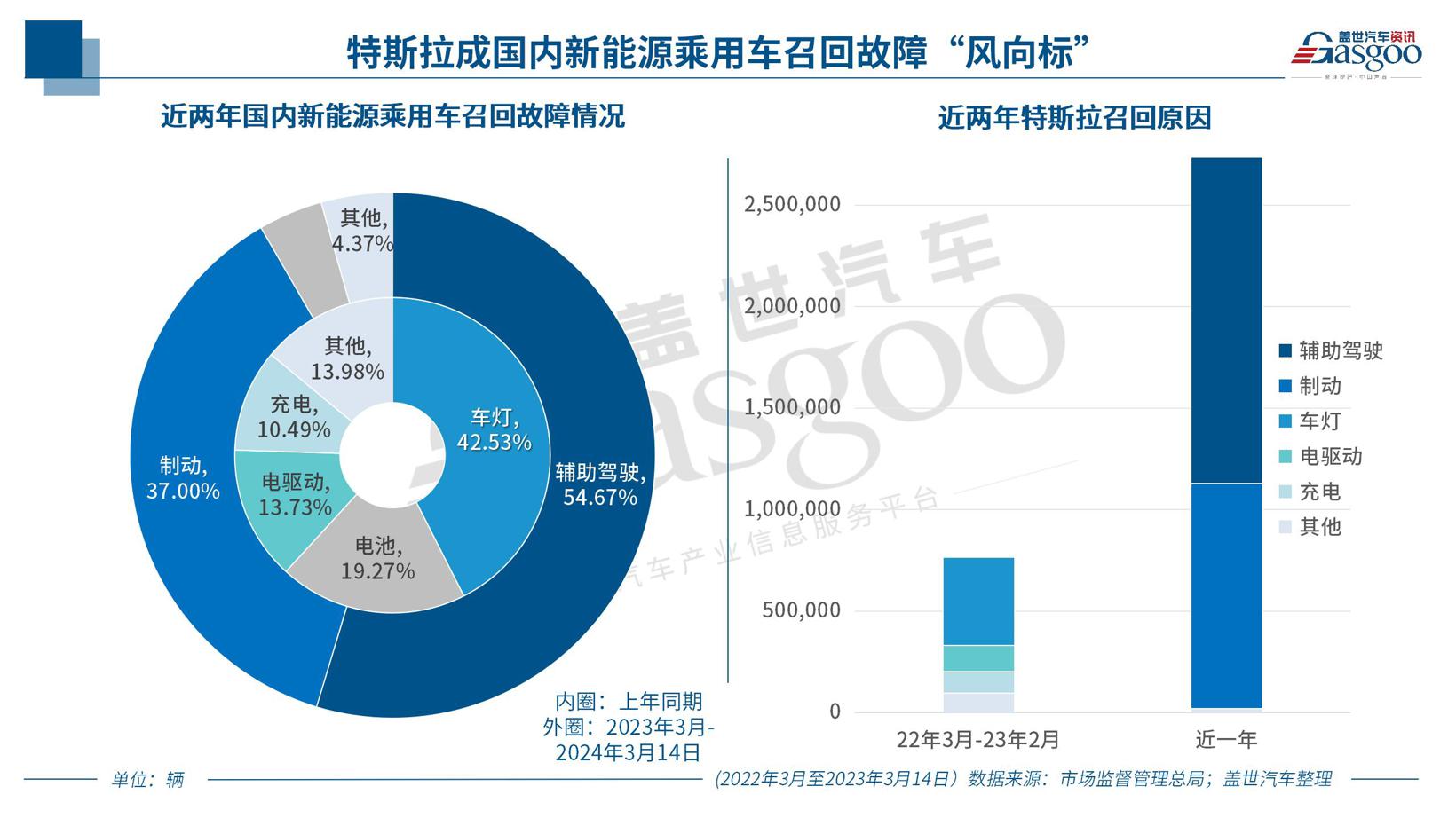 体现到召回占比上,自2023年3月至2024年3月14日,我国缺陷纯电动乘用车召回占比达31.29%,较上年同期增加了26.71万辆。放大到整个新能源乘用车范围,上述周期内累计召回故障车辆超过200万辆,创历史新高。