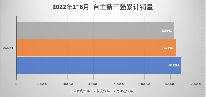 实际上,自主“新三强”1~6月累计销量的市场份额,每家都达到了6.0%以上。这是远远超过韩系和法系份额的数字。这三家的份额加起来,也远远超过了美系(包含特斯拉,9.1%)。