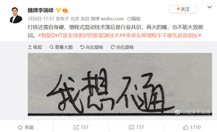 当然,L9出糗的评测视频能够做到大面积秒速“灭火”,这是理想的本事。但是敬畏之心如果缺失,必将带来反噬。李瑞峰怼华为余大嘴,波及增程式路线的理想,也是必然的。