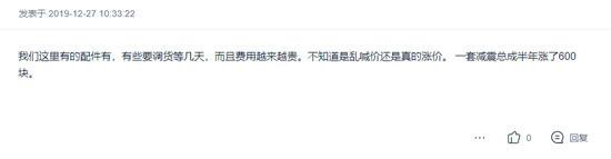 不止如此,随着原有经销商系统的崩溃,铃木的配件供应也出现了各种问题。一位网友透露,“我们这里有的配件有,有些要调货等几天,而且费用越来越贵……一套减震总成半年涨了600块”。