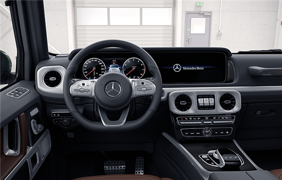 内饰方面,新车依旧与现款车型保持相同的设计,用全液晶仪表盘与中控多媒体显示屏相连接的双联屏,搭配三辐式多功能方向盘与怀挡设计。配置方面,新车相比之前的G 350增加了几何多光束LED大灯、自适应减振调节悬挂、尊贵内饰组件、后排座椅智能气候控制功能等。