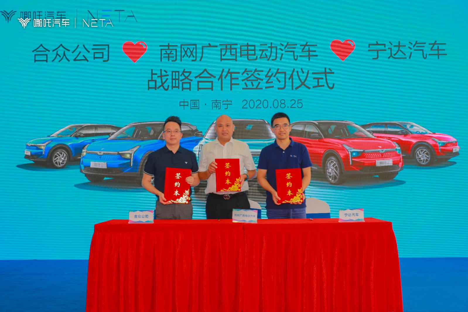 开业仪式上,哪吒汽车与南方电网广西电动车公司、广西绿盾云公司、广西达海科技公司签署一揽子合作协议和车辆采购协议。虽然没有透露具体数量,但负责人说起底都在100台以上。同时,哪吒汽车的私人用户也在本次活动上拿到了自己购买的车辆。