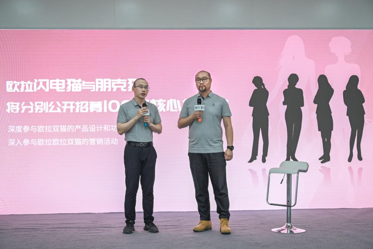现场,欧拉品牌总经理董玉东和欧拉品牌营销总经理余飞共同宣布启动欧拉闪电猫与朋克猫的“用户共创计划”:未来欧拉将公开招募100名核心共创官,深度参与闪电猫及朋克猫的产品设计和功能开发,让欧拉猫更具个性化,实现私人定制的专属创想。