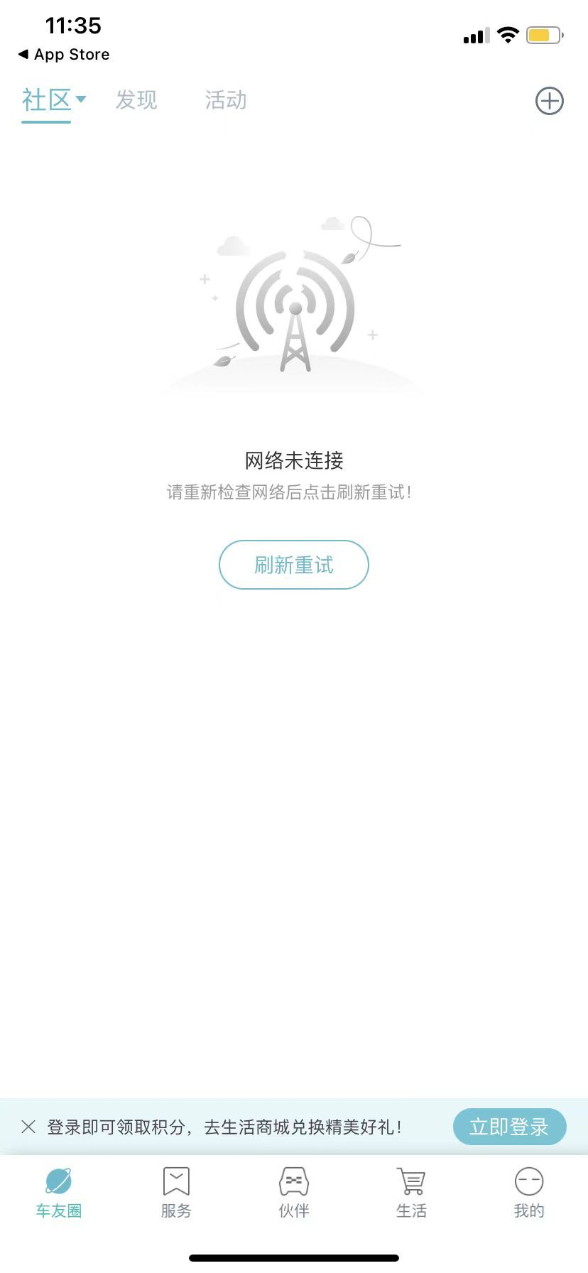 目前,打开爱驰汽车APP发现显示“网络未连接”,注册也注册不了,所有内容都无法正常查看。
