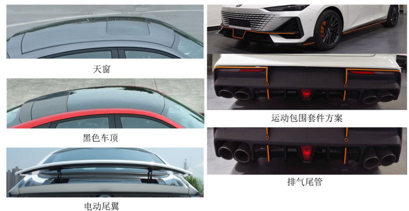 在车身尺寸方面,新车长、宽、高、分别为4680/4695mm、1838mm、1435mm,轴距为2750mm。长安UNI-V iDD的车长有两种,我们猜测这和运动包围套件选装相关。双排气管设计加上夸张的后扰流板,这辆车对运动这两个字诠释的很到位!