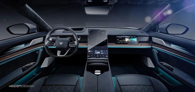 新车拥有蝶翼式前脸,灵感源于飞行器侧面剪影;搭配曲率大灯灯组,灵感源于飞行器曲速行进时。整体采用悬浮感车身形态,无框车门搭配感应式电动门把手无缝集成隐匿于车身侧面,4米范围内主驾车门自动打开。