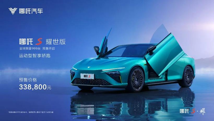电池及续航方面,阿维塔11搭载宁德时代三元锂离子电池包,总容量为90.38kWh。得益于宁德时代新一代CTP技术,阿维塔11的电池系统能量密度高达180Wh/kg,在采用双电机四驱动力的情况下,百公里能耗仅为16.6kWh,最高续航里程可达600km,续航超过700km的车型也在同步开发中。750V高压充电系统为阿维塔11带来最高可达240kW的充电功率,仅需15分钟即可将电量从30%充至80%。阿维塔有国内三家业内顶级的企业做背书,对其产品的信任程度不用多说,推荐前往。哪吒S耀世版6月6日,哪吒S耀世版正式开启预售,全球限量999台,提供增程、纯电两种动力类型,预售价33.88万元。